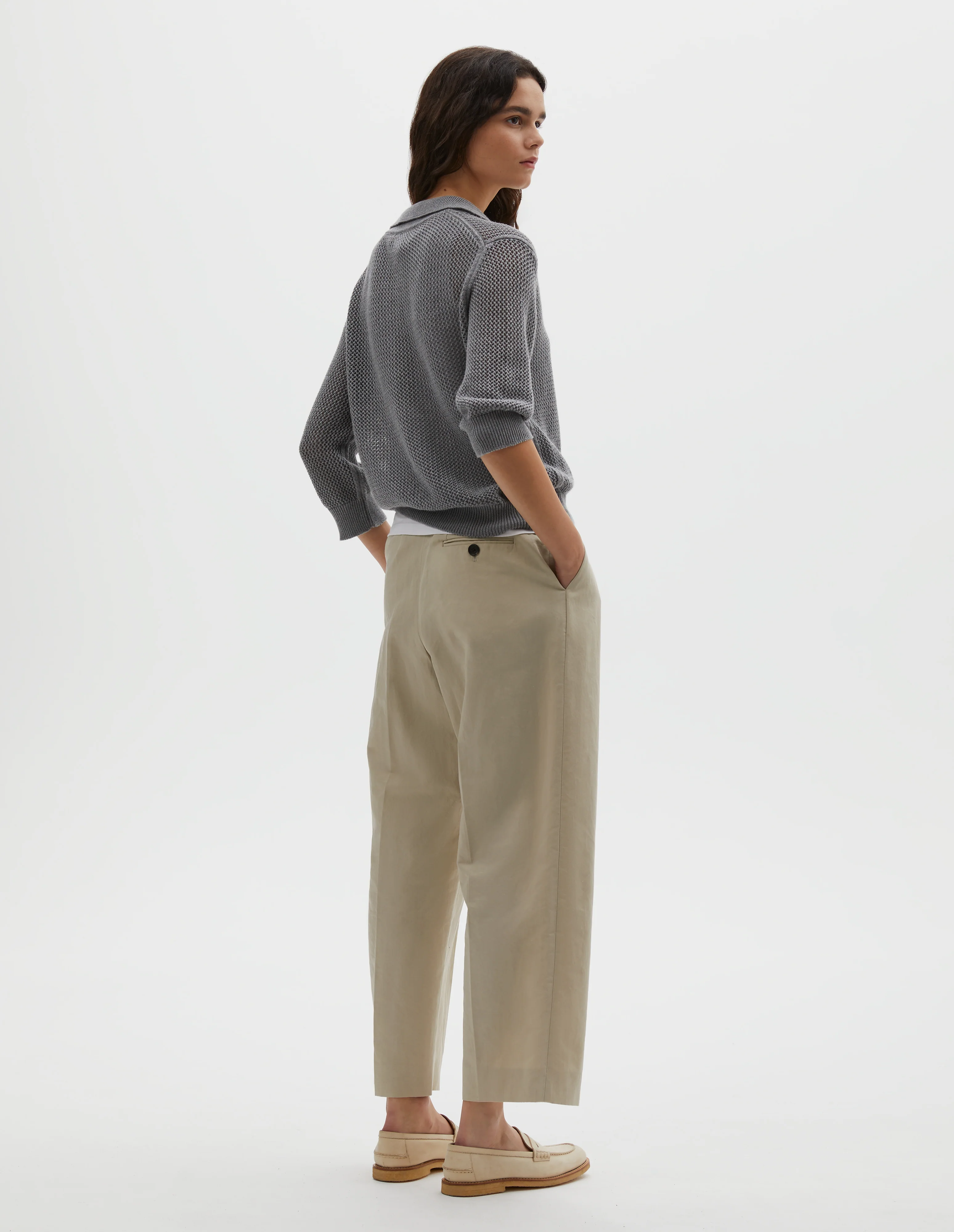 POINTELLE POLO SHIRT | LIGHT COTTON CASHMERE | GREY MELANGE