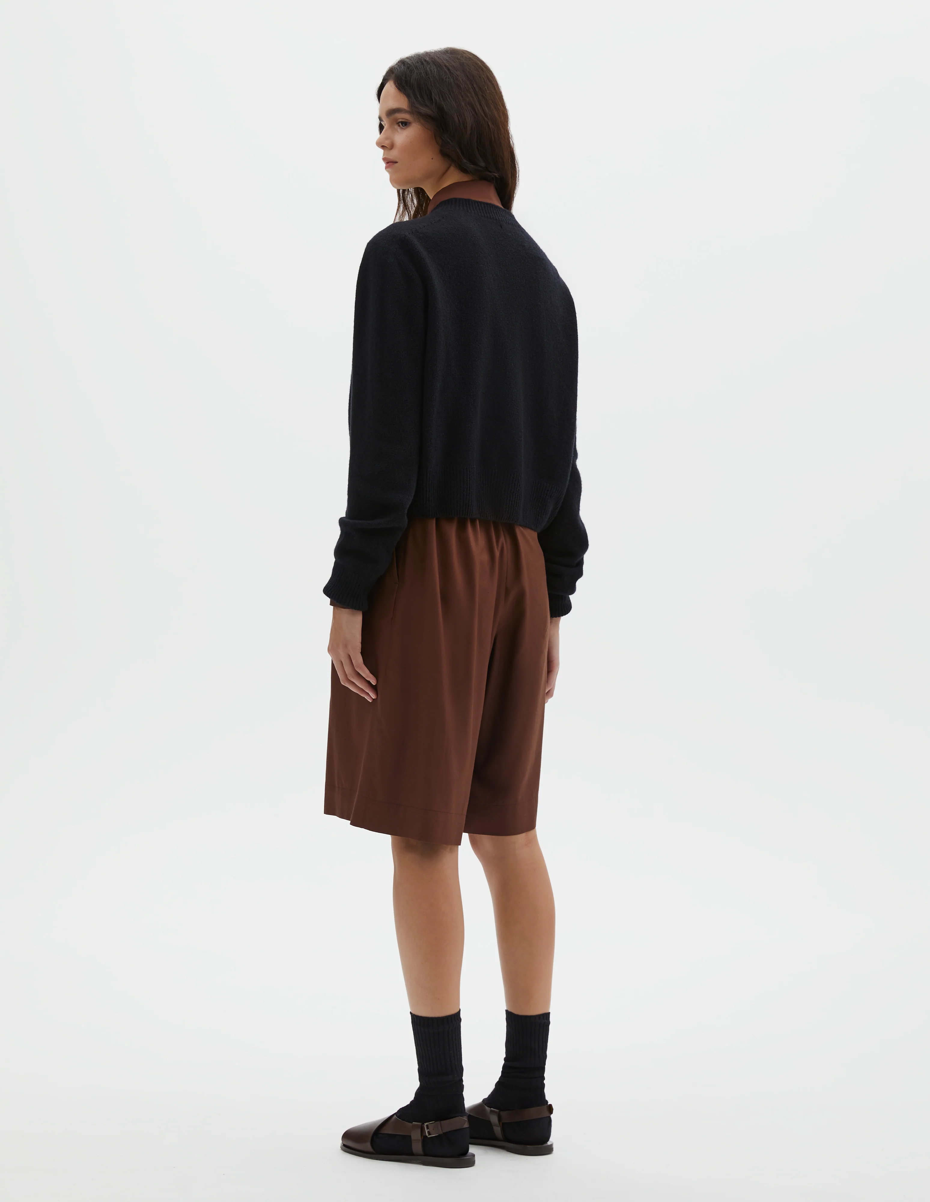 SMALL CREW NECK CARDIGAN | MERINO CASHMERE TWIST | DARK NAVY TWIST