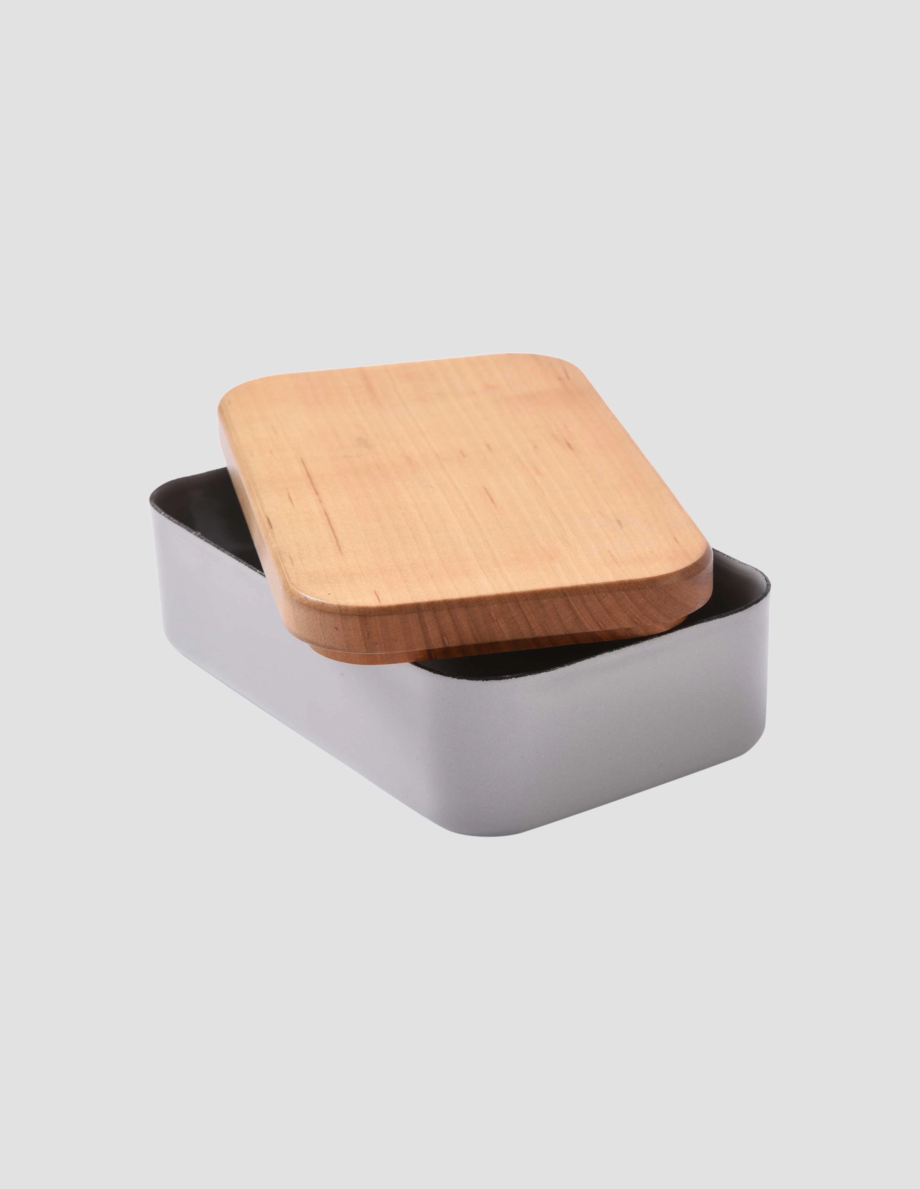 SMALL BUTTER DISH | ENAMEL / CHERRY WOOD | GREY